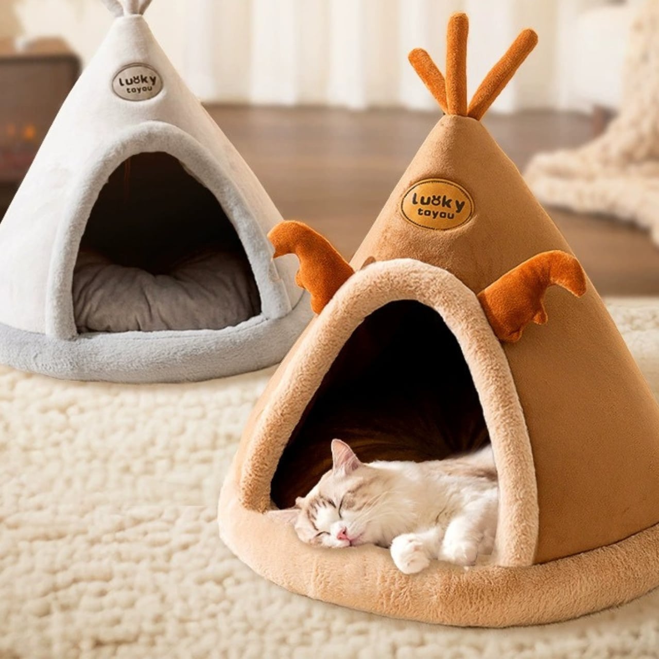 ふかふかクッション付きのテント型ベッドで、わんちゃん・ねこちゃんのくつろぎ時間をもっと快適に。