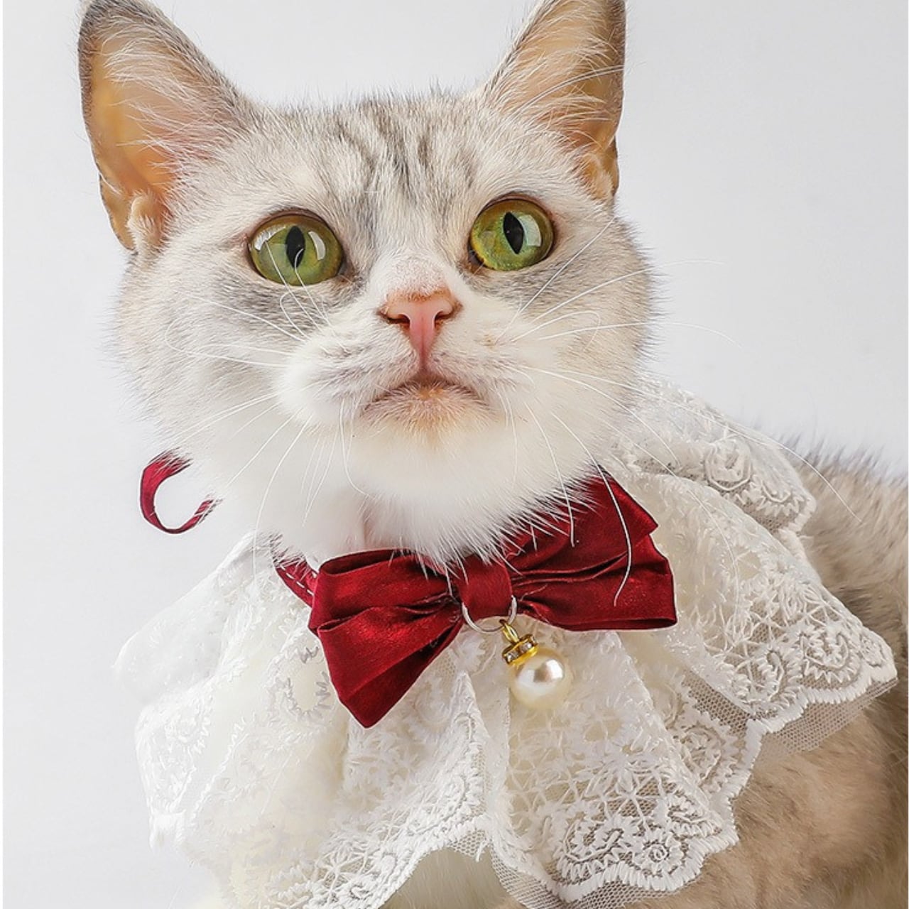 首もとで鈴がゆらっと揺れる、上品で愛らしいレースケープ✨