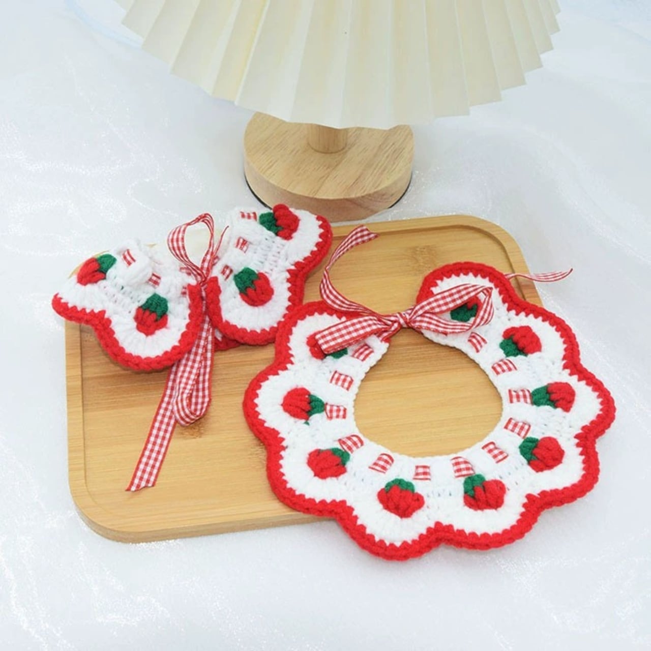 手編み風であたたかみたっぷりいちご柄スタイ✨