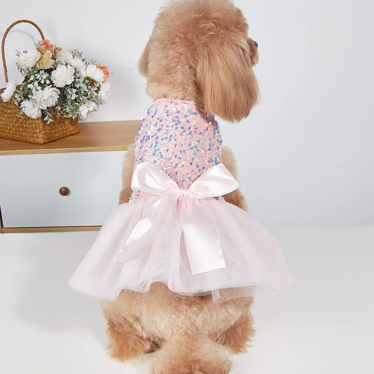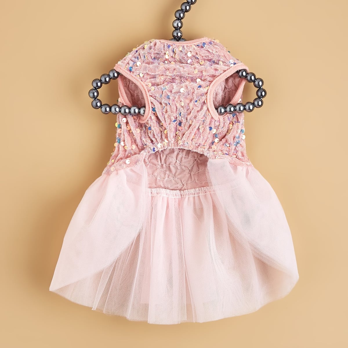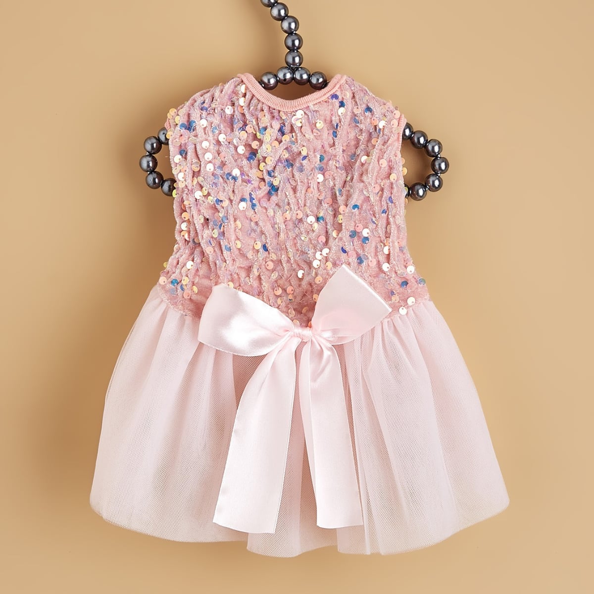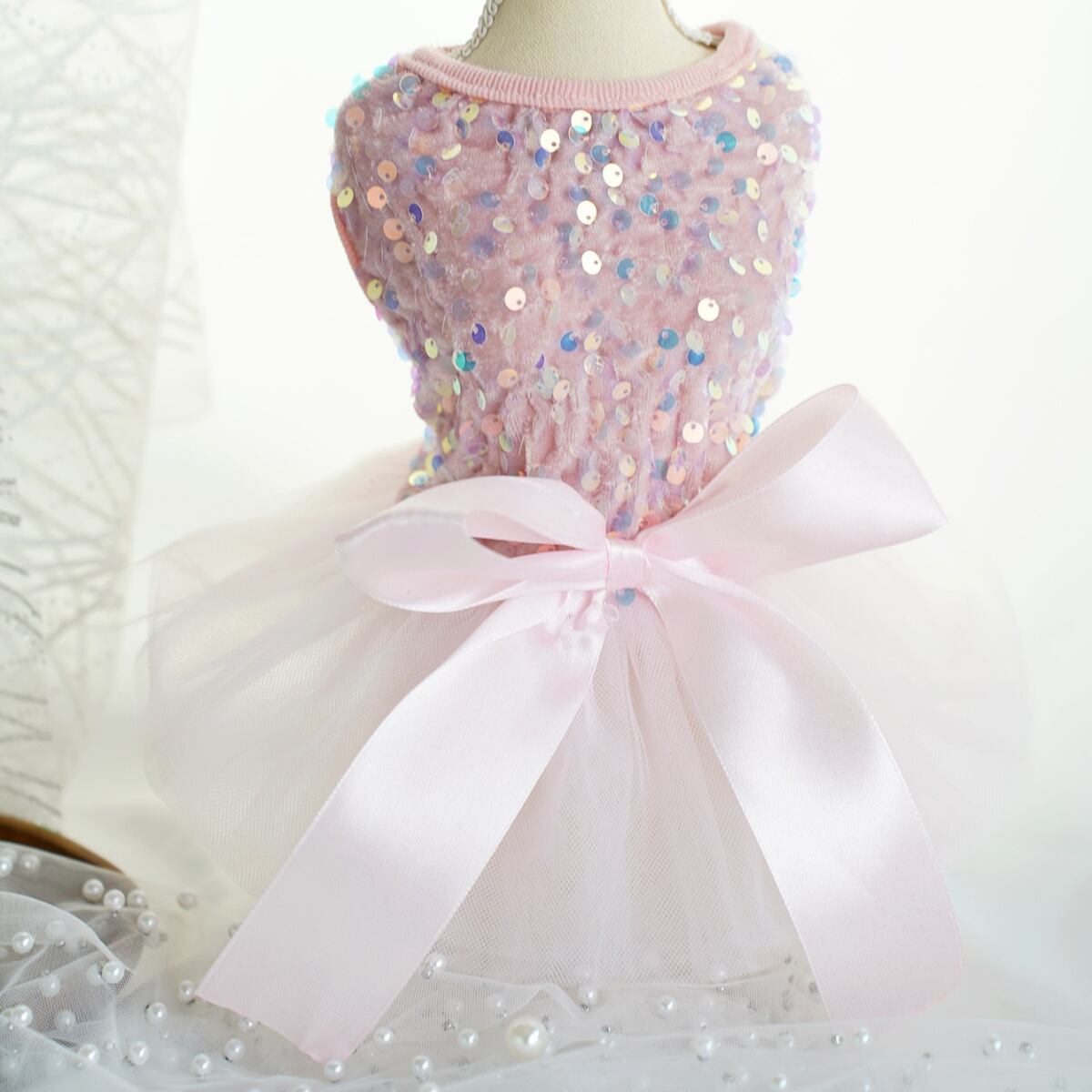✔ エレガントなピンク色に、華やかなスパンコールとリボンで、愛犬を主役に