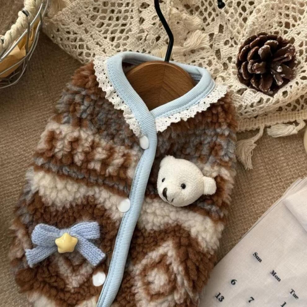 “うちの子を特別な日のかわいいクマに変身させる”ドッグベルベットセーターです♪