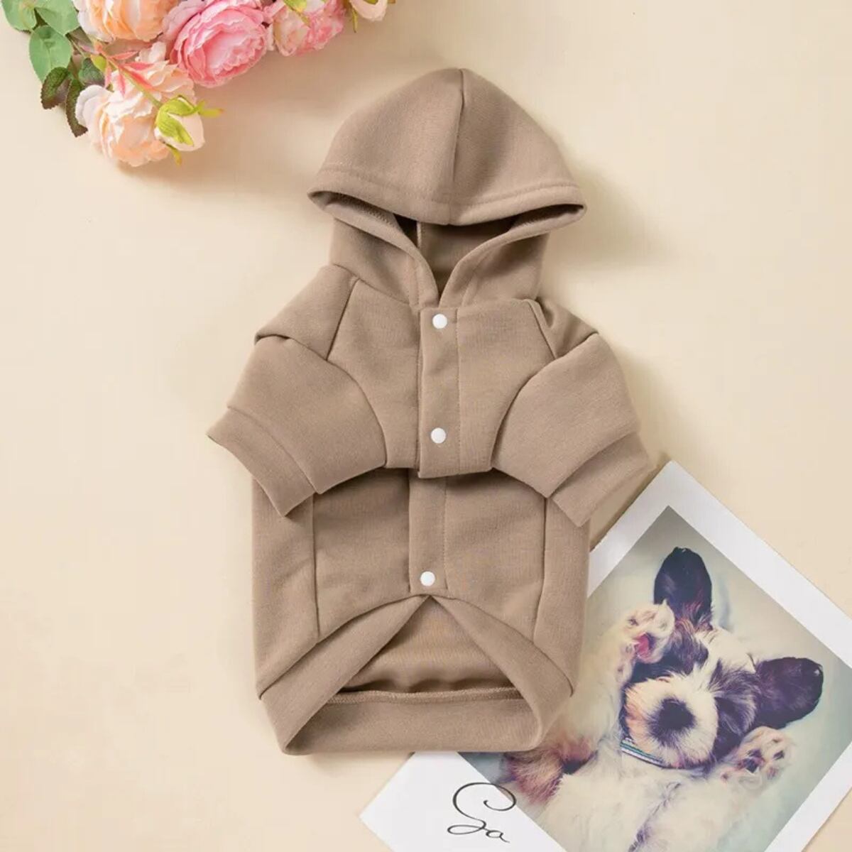 愛犬を愛らしいスタイルに変身させる、フード付きのドッグスウェットシャツです✨