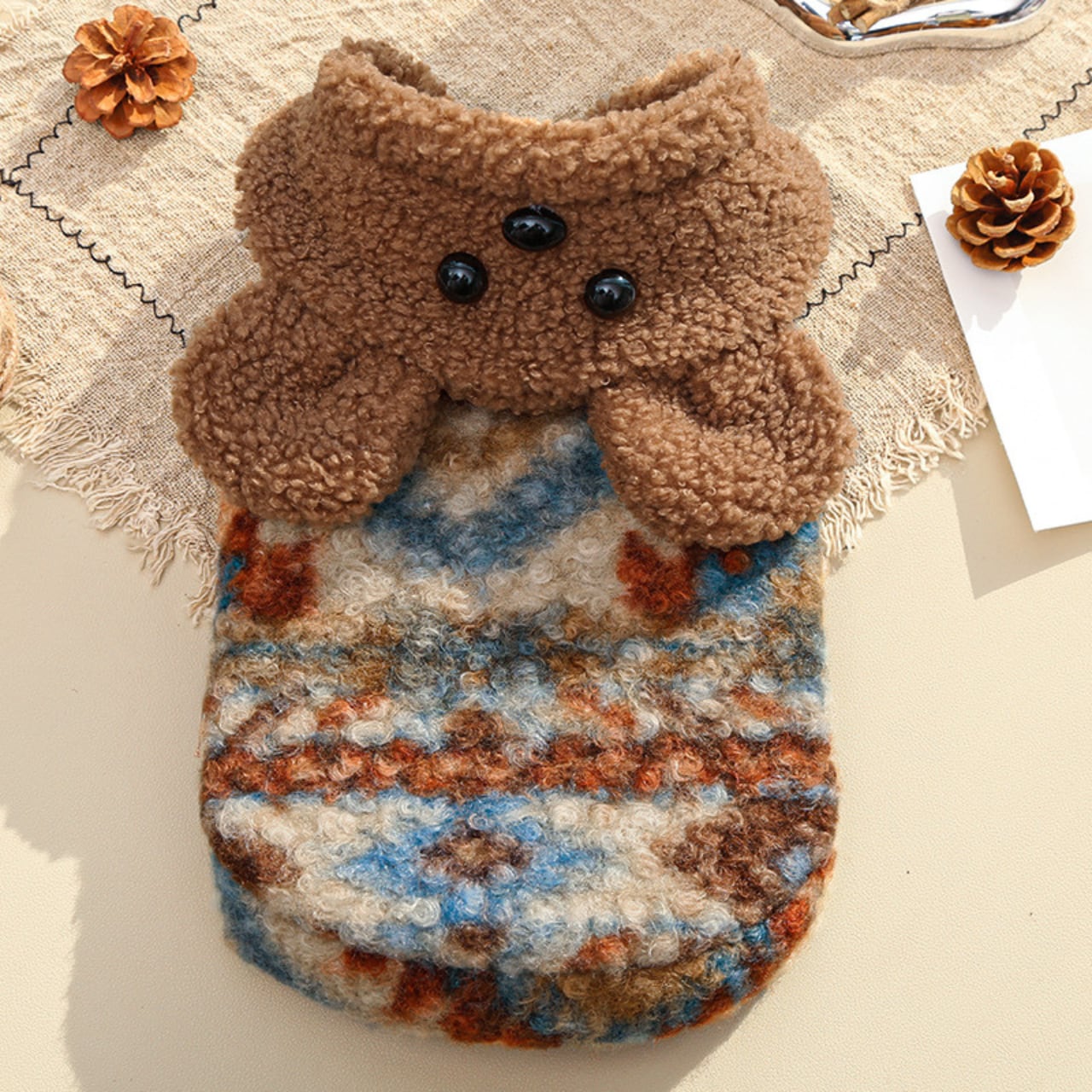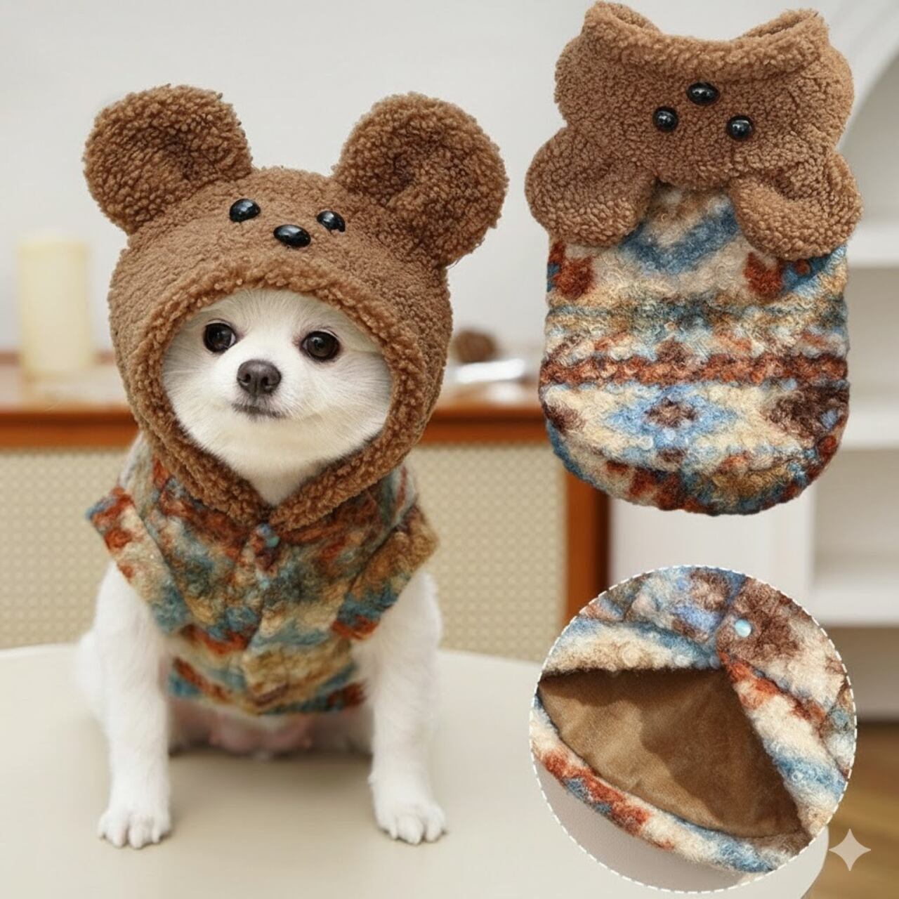 愛犬をほっこり可愛らしいスタイルに変身させる、フェアアイル柄のドッグフリースです✨