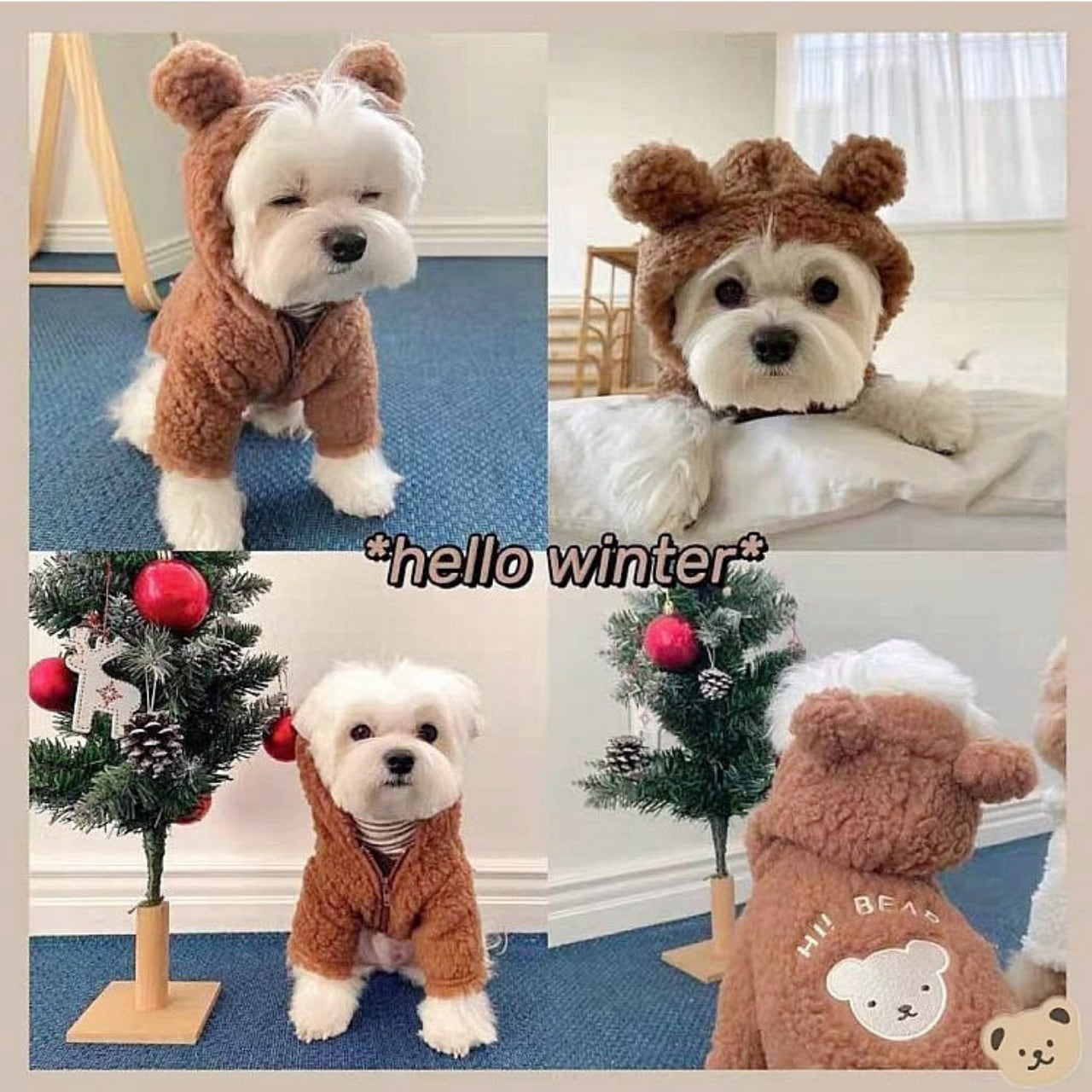 愛犬をふわもこで可愛い熊のようなスタイルに変身させる、フード付きパーカーです✨