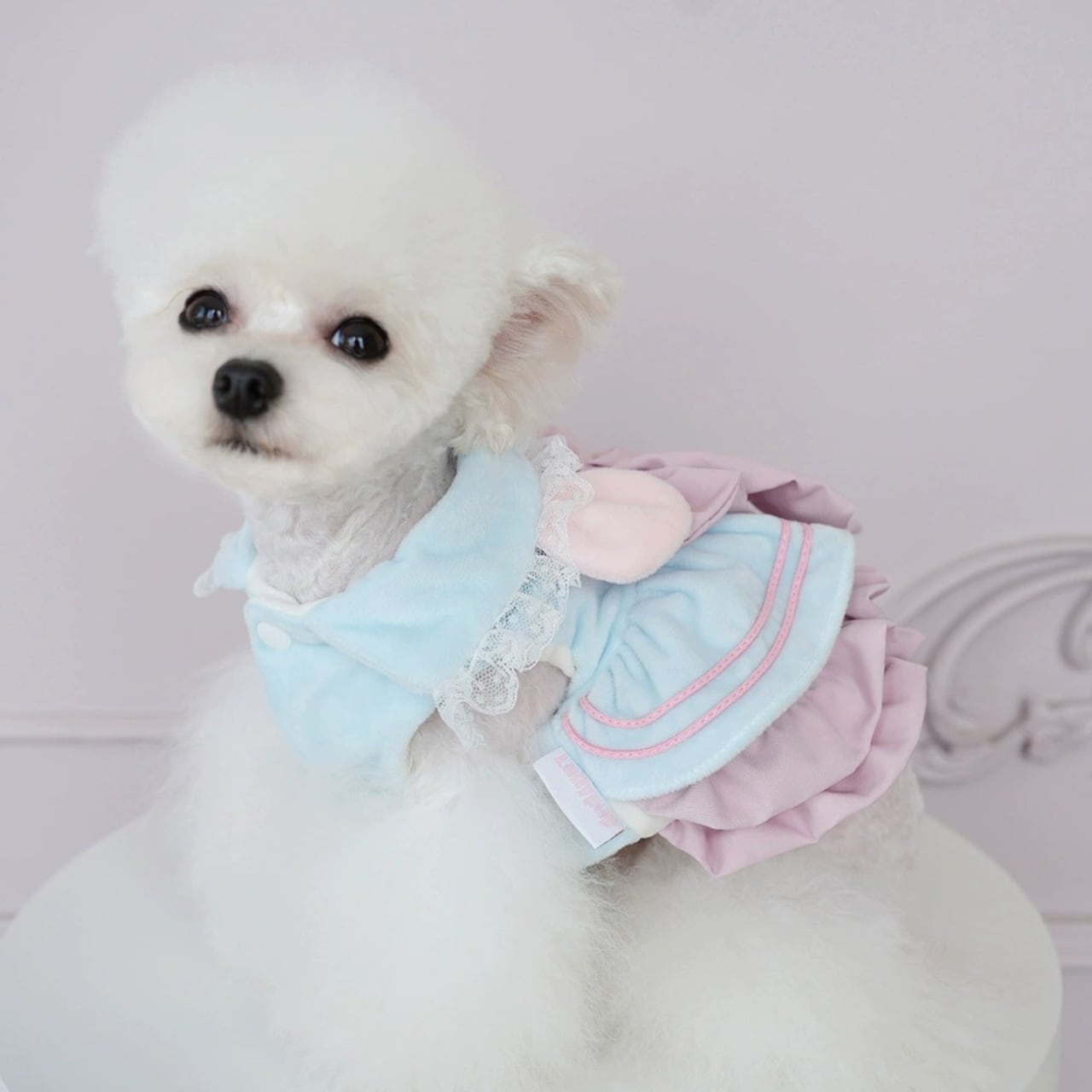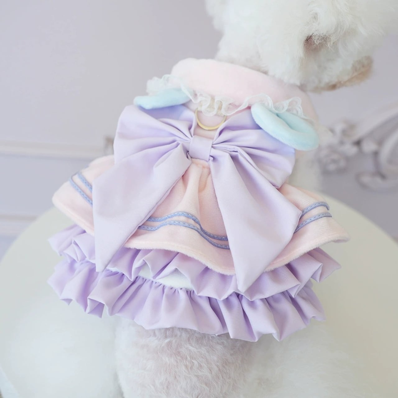 “うちの子を特別な日のふわふわ熊スタイルに変身させる”リボン付きドッグベストです♪